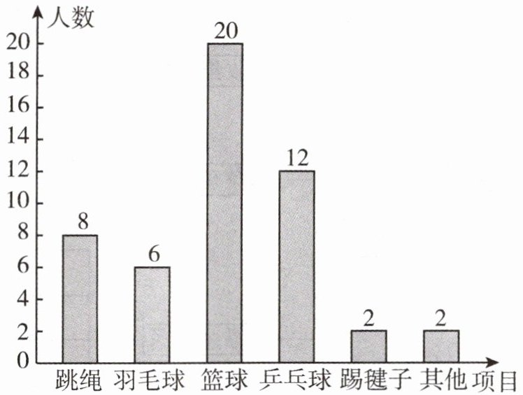 3. “阳光体育”运动在某市轰轰烈烈开展,为了了解同学们最喜爱的“阳光体育”运动项目,小王对本班 50 名同学进行了跳绳、羽毛球、篮球、乒乓球、踢毽子等运动项目中最喜爱人数的调查,并根据调查结果绘制了右面统计图,若将其转化为扇形图,那么最喜爱打篮球的人数所在扇形区域的圆心角的度数为 (