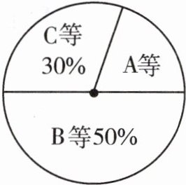 5. 某班 50 名学生参加 2022 年初中毕业生学业考试,综合评价等级为 A,B,C 等.情况如右面的扇形图所示,则该班得 A 等的学生有