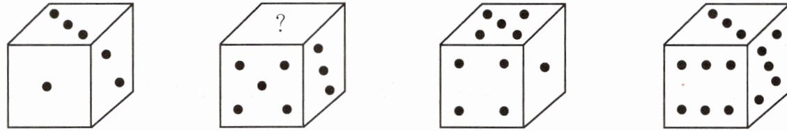 下面是从不同位置看到的某个骰子的图片,仔细观察它们,看看能不能猜出问号处的点数是