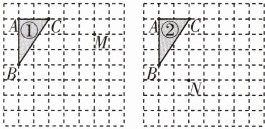 在方格中平移三角形$ABC$,①使点$A移到点M$,画出平移后的三角形;②使点$A移到点N$,画出平移后的三角形.