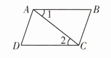 1. 如下左图,$∠1= ∠2$,$∠BAD= ∠BCD$,有下列结论:①$AB// CD$;②$AD// BC$;③$∠B= ∠D$;④$∠D= ∠ACB$.其中正确的有 (