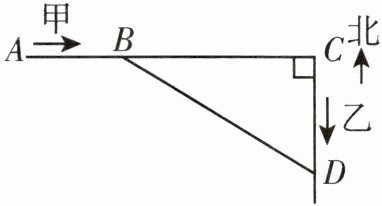 2. 如下图,东西方向上 $ A,C $ 两地相距 $ 10 \mathrm{~km} $,甲以 $ 16 \mathrm{~km} / \mathrm{h} $ 的速度从 $ A $ 地出发向正东方向前进,乙以 $ 12 \mathrm{~km} / \mathrm{h} $ 的速度从 $ C $ 地出发向正南方向前进,那么甲、乙相距 $ 6 \mathrm{~km} $ 时,最快经过 (