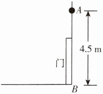 4. 如下图,有一个由传感器控制的灯 $ A $,要装在门上方离地面 $ 4.5 \mathrm{~m} $ 的墙上,任何东西只要移至该灯 $ 5 \mathrm{~m} $ 及 $ 5 \mathrm{~m} $ 内,灯就会自动发光. 小明身高 $ 1.5 \mathrm{~m} $,他走到离墙