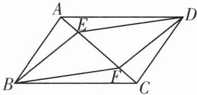 1. 如右图,在$□ ABCD$ 中,$AC$ 为对角线,已知点 $E,F$ 在 $AC$ 上,添加一个条件