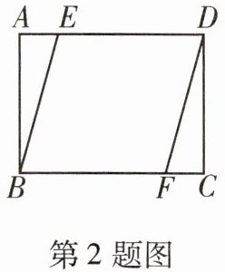 2. 如图,在矩形 $ABCD$ 中,$AB = 3$,$BC = 4$,$EB // DF$,且 $BE$ 与 $DF$ 之间的距离为 $3$,则 $AE$ 的长是(