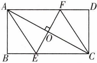 3. 如图,过矩形$ABCD的对角线AC的中点O作EF⊥AC$,交$BC边于点E$,交$AD边于点F$,分别连接$AE$,$CF$。