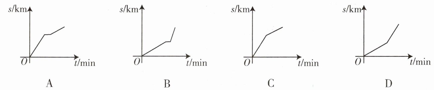 3. 某教师到一村寨进行学生家访工作,开始时骑摩托车大约用了40 min的时间走了10 km,休息了10 min,然后花近30 min的时间徒步走了4 km到达该村寨. 下列能表示该教师行走的路程$s$(单位:km)与时间$t$(单位:min)的函数关系的图象是(