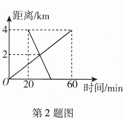 2. 如图,已知 A,B 两地相距 4 km,上午 11:00,甲从 A 地出发步行到 B 地,11:20 乙从 B 地出发骑自行车到 A 地,甲、乙两人离 A 地的距离(单位:km)与甲所用时间(单位:min)之间的关系如图所示,由图中的信息可知,乙到达 A 地的时间为(