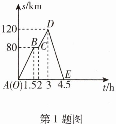 1. 如图,图象(折线 ABCDE)描述了一汽车在某一平直道路上行驶过程中汽车离出发地的距离s(单位:km)和行驶时间t(单位:h)之间的函数关系,根据图中提供的信息,下列说法正确的是(