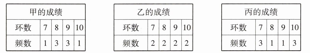 3. 甲、乙、丙三名射箭运动员在某次测试中各射箭 8 次,这三名运动员的测试成绩如下表: