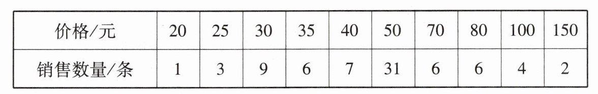 1. 某水晶商店一段时间内销售了各种不同价格的水晶项链 75 条,其价格和销售数量如下表: