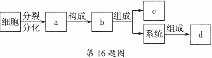 16. 如图表示多细胞生物体的结构层次,有关叙述正确的是(