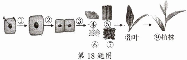 18. 西湖龙井享誉中外,如图是龙井茶树的结构层次示意图及细胞变化过程。