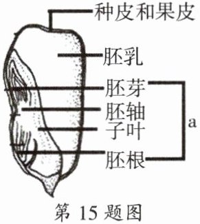 15. 如图为玉米种子的纵切图,据图回答: