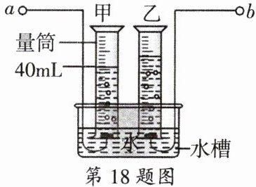 18. 水电解时,常会在水中加入一些氢氧化钠以增强导电性(水电解过程中氢氧化钠本身不会变化),从而加快电解速度。为探究影响水电解快慢的因素,小乐做了如下实验,实验结果如下表: