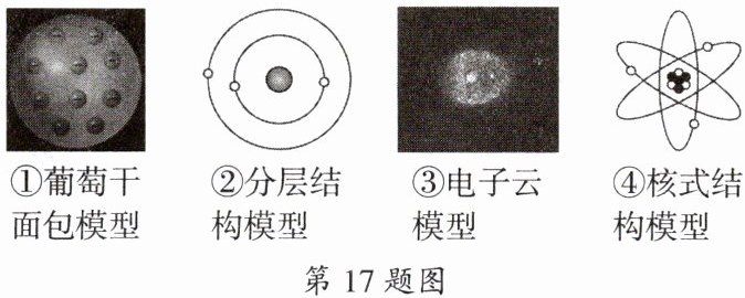 17. 为破解原子内部结构的奥秘,一代又一代科学家进行了不懈地探索。1909年,英国科学家卢瑟福进行了著名的α粒子轰击金箔实验。