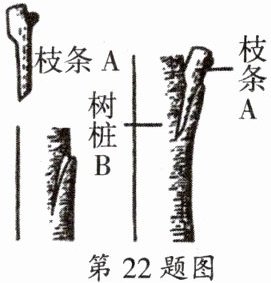 22. 农技人员成功应用了一种让银杏树提前“结果”的技术,就是在已经能结果的银杏树上截取健壮的枝条A通过一定的技术与未到结果期的银杏树桩B“结合”,枝条成活后就能提前挂果,如图。在这项操作中用到的繁殖方法是