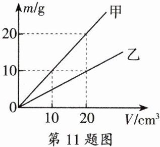 11. 如图为甲、乙两种物质的 $m - V$ 图像,下列说法正确的是 (