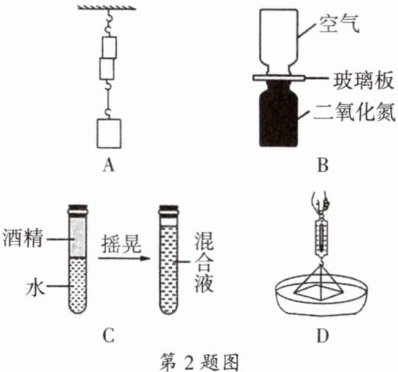 2. 如图,下面四个实验现象中,能够说明分子在不停地运动的是 (