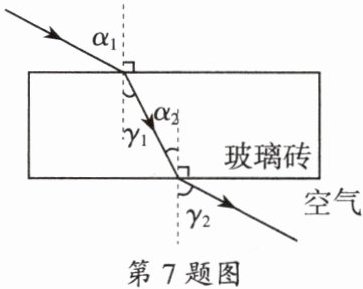 7. 一束光从空气中斜射向玻璃砖并穿过,其光路如图所示。关于四个角的大小关系正确的是 (