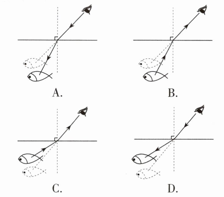 2. 小科看到水里有鱼,以下能正确反映看到鱼的光路图的是 (