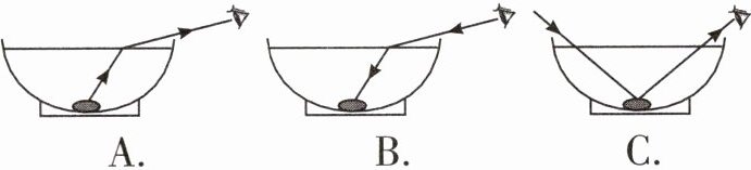 11. 如图,起初茶碗看起来是空的,但当你慢慢往茶碗中倒水时,就会发现碗中原来还藏着一枚硬币。