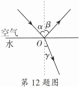 12. 小湖探究光的折射特点时,观察到光从空气射入水中的光路,通过实验得到如表数据。
