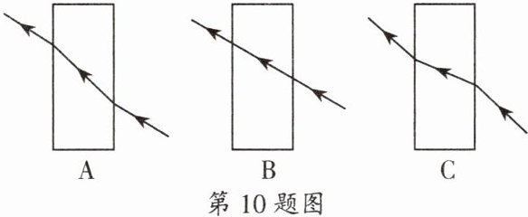 10. 一些大厦用大块镀膜玻璃做外墙,这种玻璃幕墙既能透射光线也能反射光线。鸟儿白天会将玻璃幕墙看成蓝天白云,这是由于光线照射在光滑的玻璃幕墙上会发生