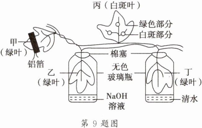 (3)本实验中有3组对照实验:乙叶和丁叶形成的对照实验的变量是