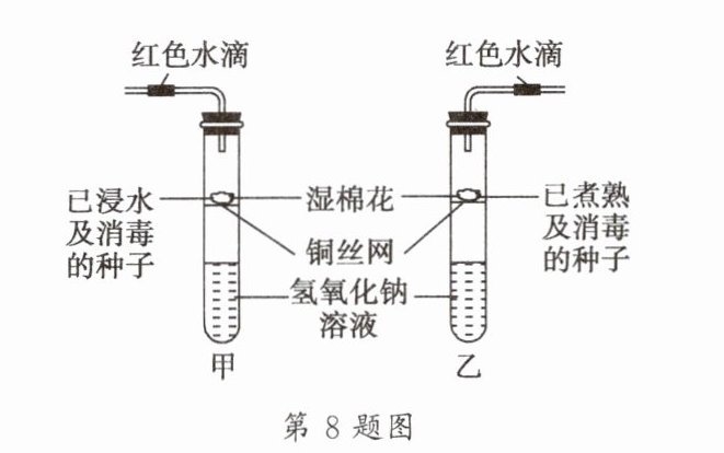 8. 如图所示是小柯探究种子呼吸作用的实验装置。