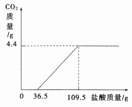 加入稀盐酸的质量与生成二氧化碳质量的曲线图,如图: