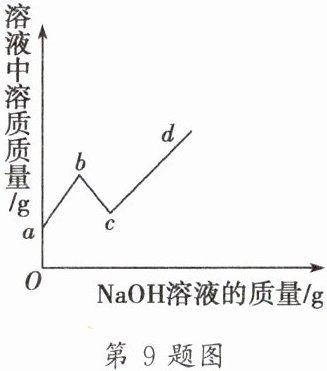 9. 向一定量硫酸和硫酸铜的混合溶液中,逐滴加入一定质量分数的氢氧化钠溶液,直至过量。某同学依据实验事实绘制了如图所示的曲线,下列说法正确的是( )