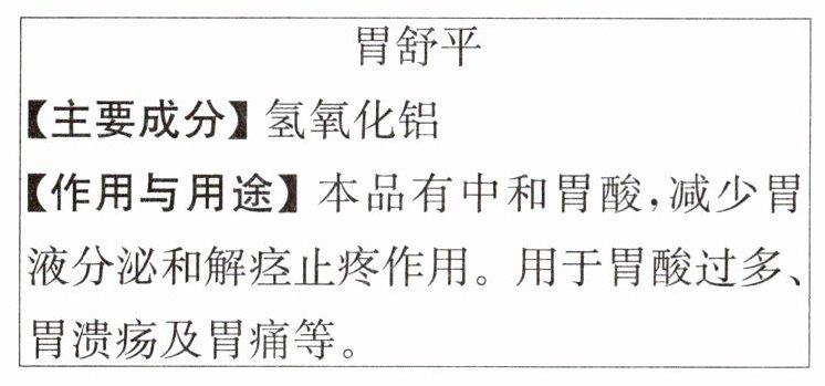 、消化和保护的作用,但分泌过多会对身体造成伤害。如图所示是某品牌胃舒平片的部分说明书,根据信息可知,胃舒平的主要成分是Al(OH)₃