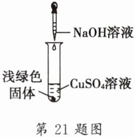 21. 兴趣小组实验中,将NaOH溶液滴入$CuSO_{4}$溶液中,结果溶液中生成了浅绿色的固体。于是,他们对该浅绿色固体的成分进行探究。