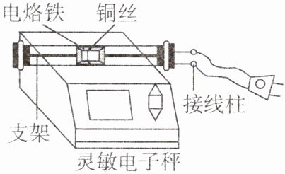 例1 如图所示为小柯做的创新实验:将铜丝绕在电烙铁上,电烙铁用支架固定在密闭的硬质玻璃管中,玻璃管置于灵敏电子台秤上。接通电路,电烙铁开始工作,可以观察到铜丝表面逐渐变黑,电子台秤读数保持不变。下列说法正确的是 (