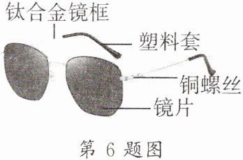 6. 如图是一款变色眼镜,它的镜片内含有溴化银和氧化铜。在强光照射下,溴化银分解成单质溴和银,镜片颜色变深;当光线变暗时,溴和银在氧化铜催化作用下,又立即化合成溴化银,镜片颜色变浅。有关该眼镜的说法错误的是(