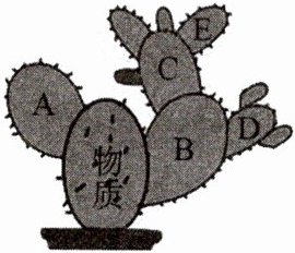 例 模型认知是学习化学核心素养之一,某同学用不断生长的仙人掌来构建物质分类的分支模型,A为混合物,对B、C、D、E处分别代表的物质类别判断不正确的是