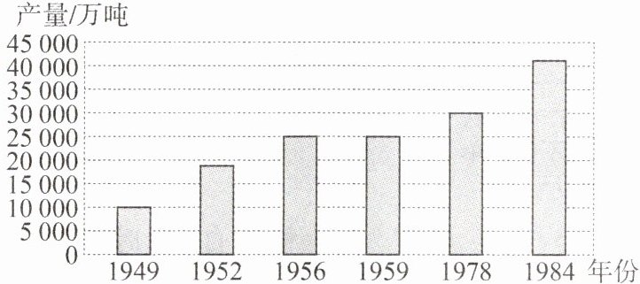 3. 下图是1949—1984年中国粮食生产状况柱状图。图中出现了几个粮食产量快速增长时期,其主要原因是我国实行了 ……………………………………………………………………… ( )