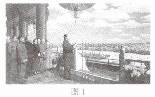 (2)材料二中的图1反映的是什么事件? 有观点认为该事件是“中国历史的新纪元”,请你根据图2谈谈对此观点的认识。(5分)