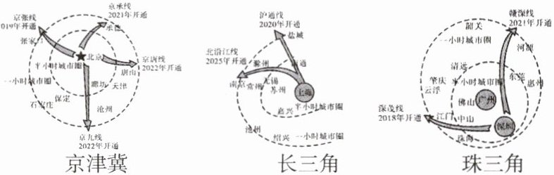 6. 如下图,伴随高速铁路的开通,“半小时”“一小时”城市圈形成。这一成就 …………( )