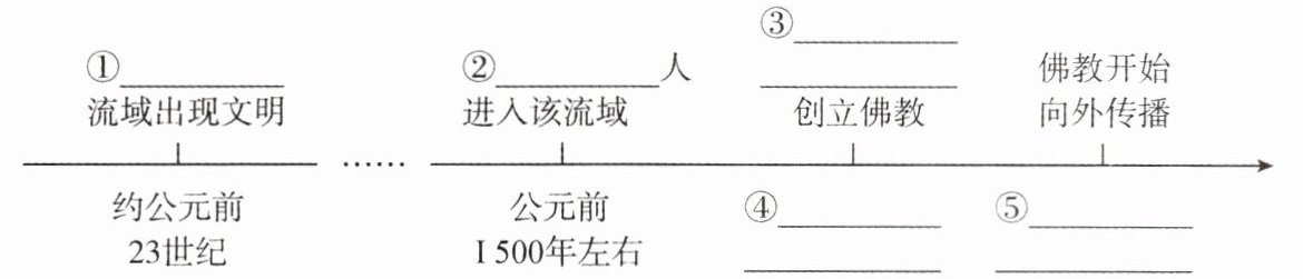 ①印度河 ②雅利安 ③乔达摩·悉达多 ④公元前6世纪 ⑤公元前3世纪后