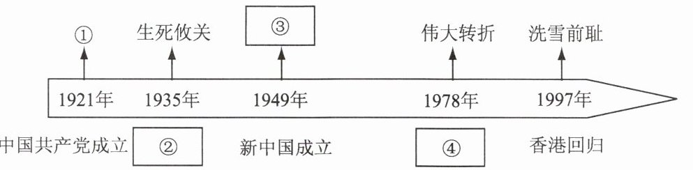 4. 某同学在学习中国共产党100年的奋斗历程时,自制了一把历史年代尺,其中④处应该填写的是