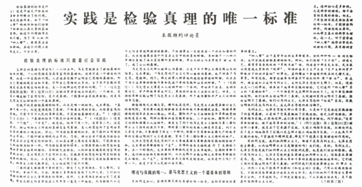 1. 下图是1978年5月《光明日报》的一篇文章,该文章引发了一场深刻的思想解放运动。这里所说的思想解放是指