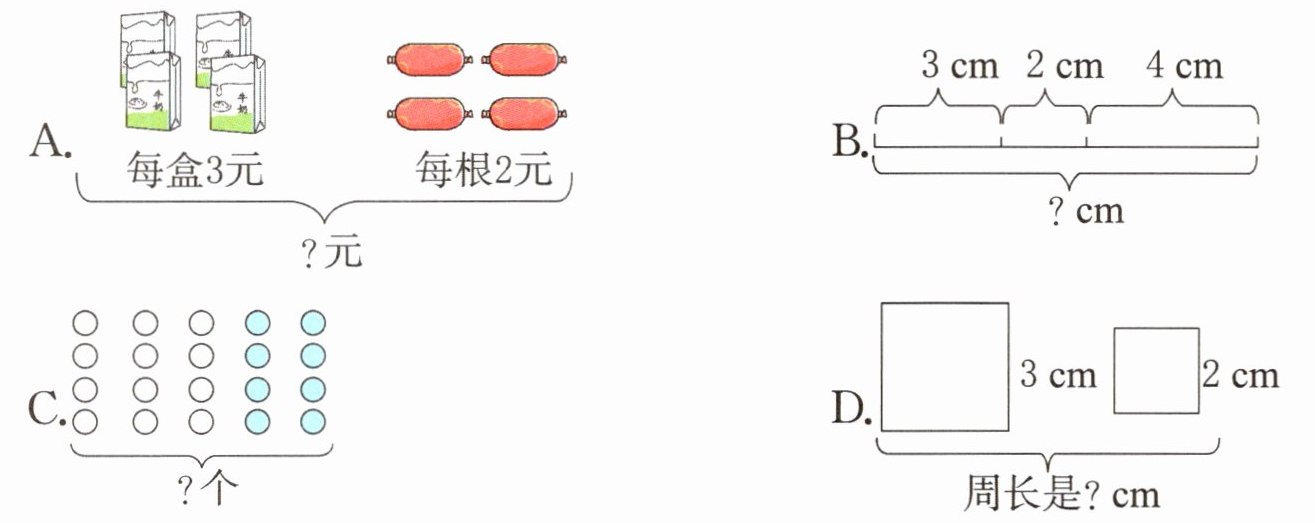 3. 下面各图中,不能说明$3×4+2×4与(3+2)×4$相等的是(
