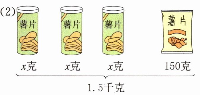 3个x克薯片和150克薯片共1.5千克