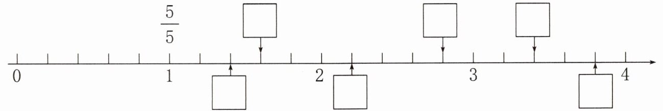 7. 如图,在直线上面的$□$里填上适当的假分数,在直线下面的$□$里填上适当的带分数。(每空 1★)