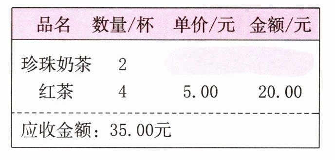 7.(经典好题)小本不小心把购物小票弄脏了(如图),若设珍珠奶茶的单价为x元,你能写出一个等量关系,并用方程表示出来吗?(7★)