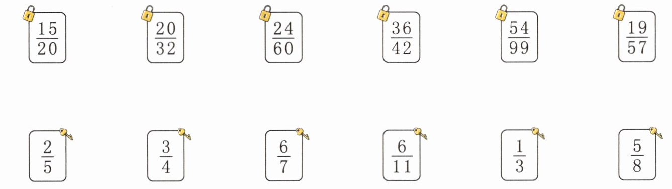 $\frac{45}{72}$= $\frac{15}{24}$ $\frac{54}{57}$= $\frac{18}{19}$ $\frac{96}{72}$= $\frac{16}{12}$ $\frac{60}{40}$= $\frac{30}{20}$
