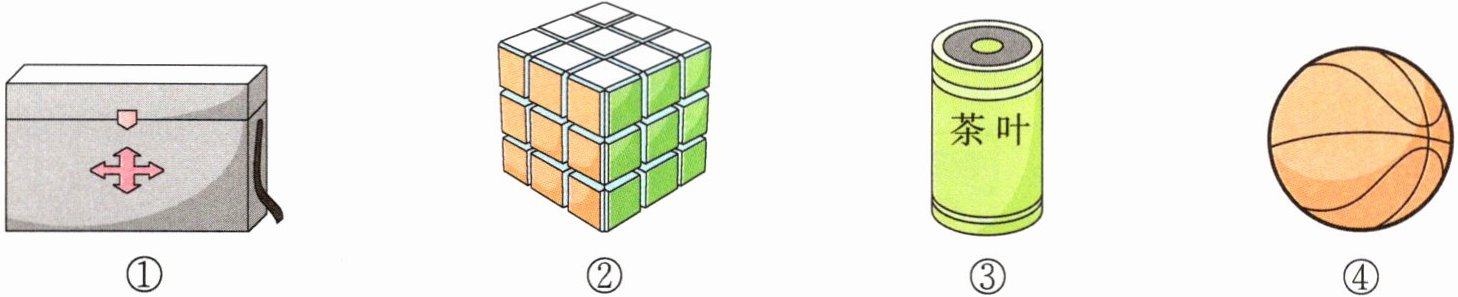 ①号物体是一个医药箱,它有$6$个面,每个面都是长方形,相对的面完全相同,有$12$条棱,相对的棱长度相等,有$8$个顶点,符合长方体的特征,所以①号物体是长方体。