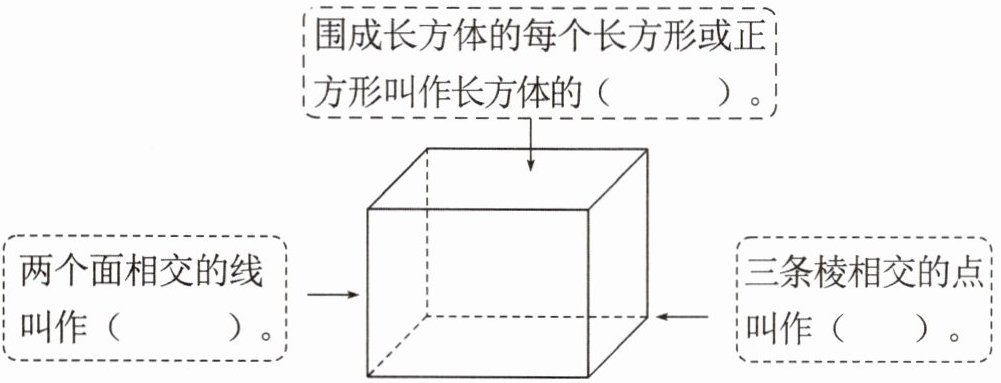 长方体的特征是:有$6$个面,每个面都是长方形(特殊情况有两个相对的面是正方形),相对的面完全相同;有$12$条棱,相对的棱长度相等;有$8$个顶点。